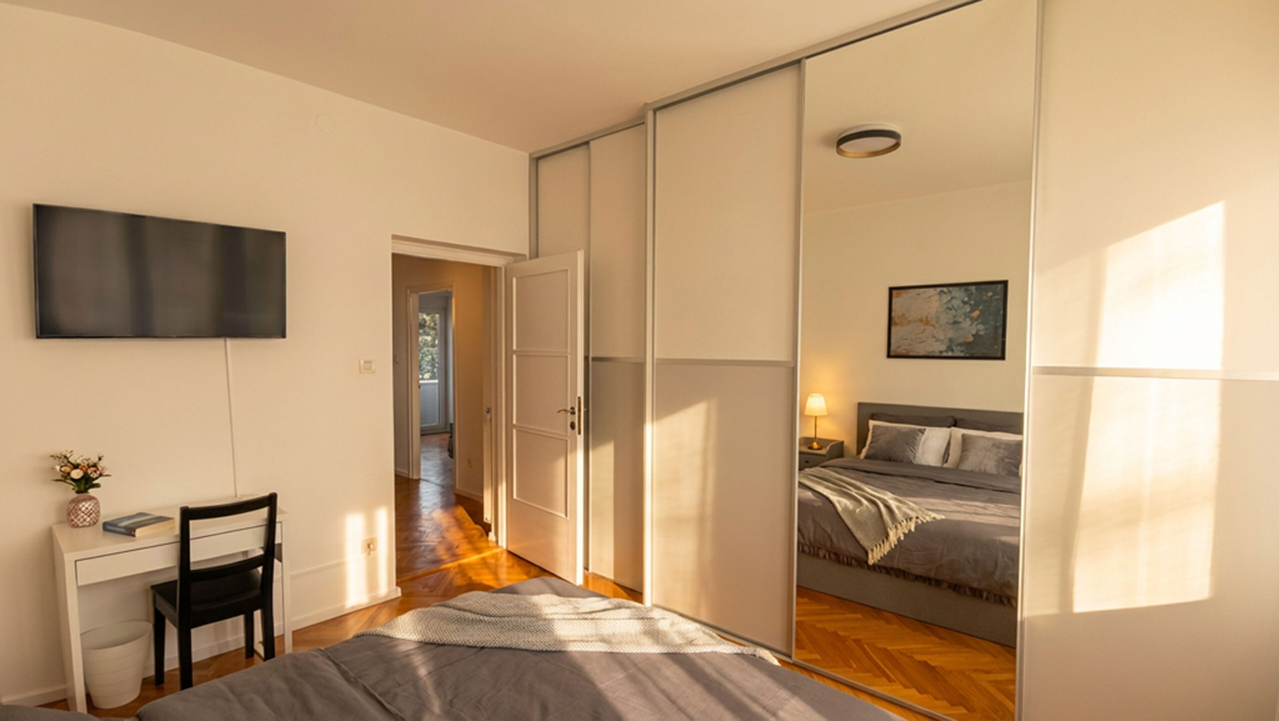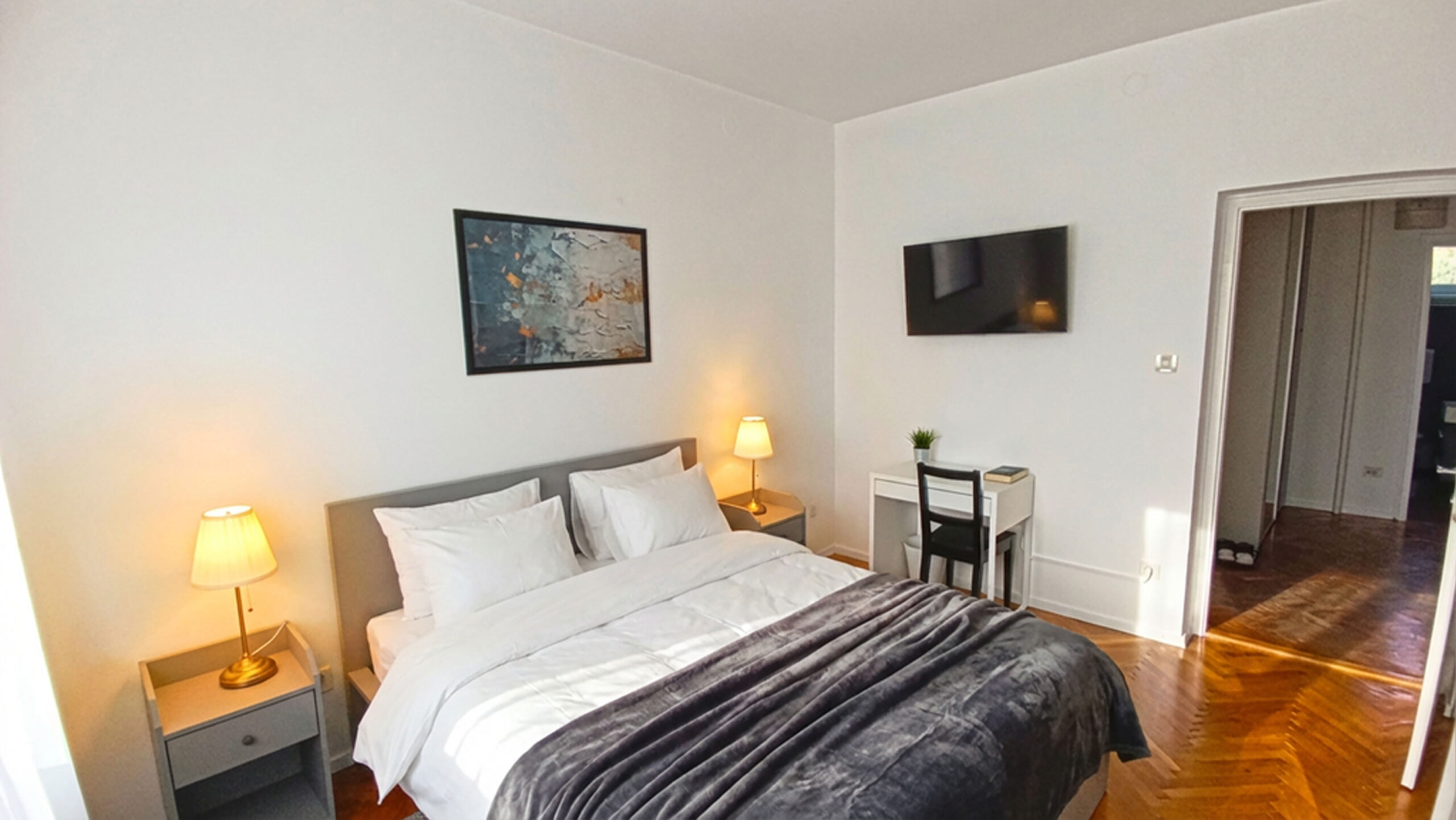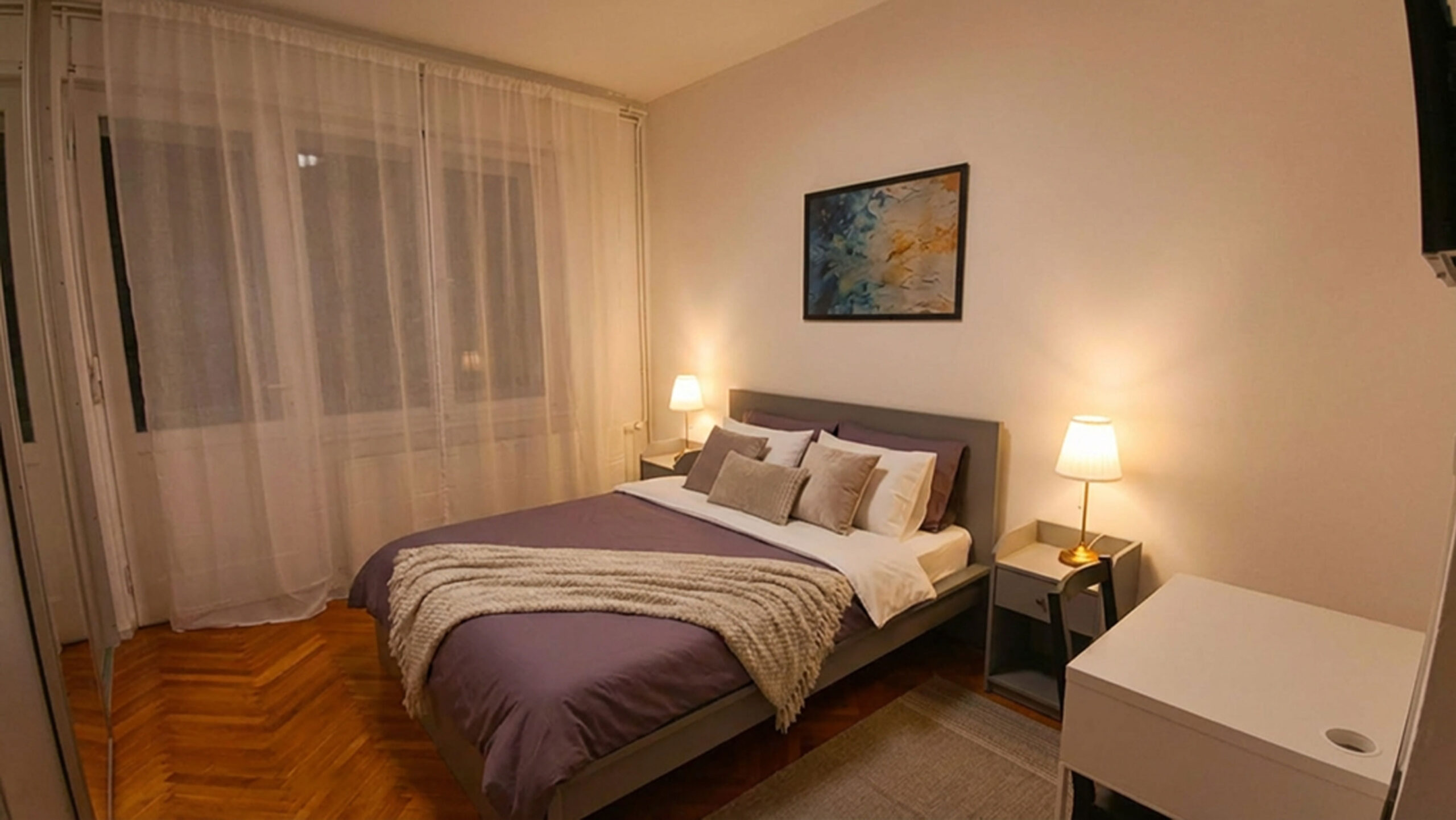 Udoban bračni krevet, kvalitetan madrac i diskretna rasvjeta stvaraju idealne uvjete za dobar san.